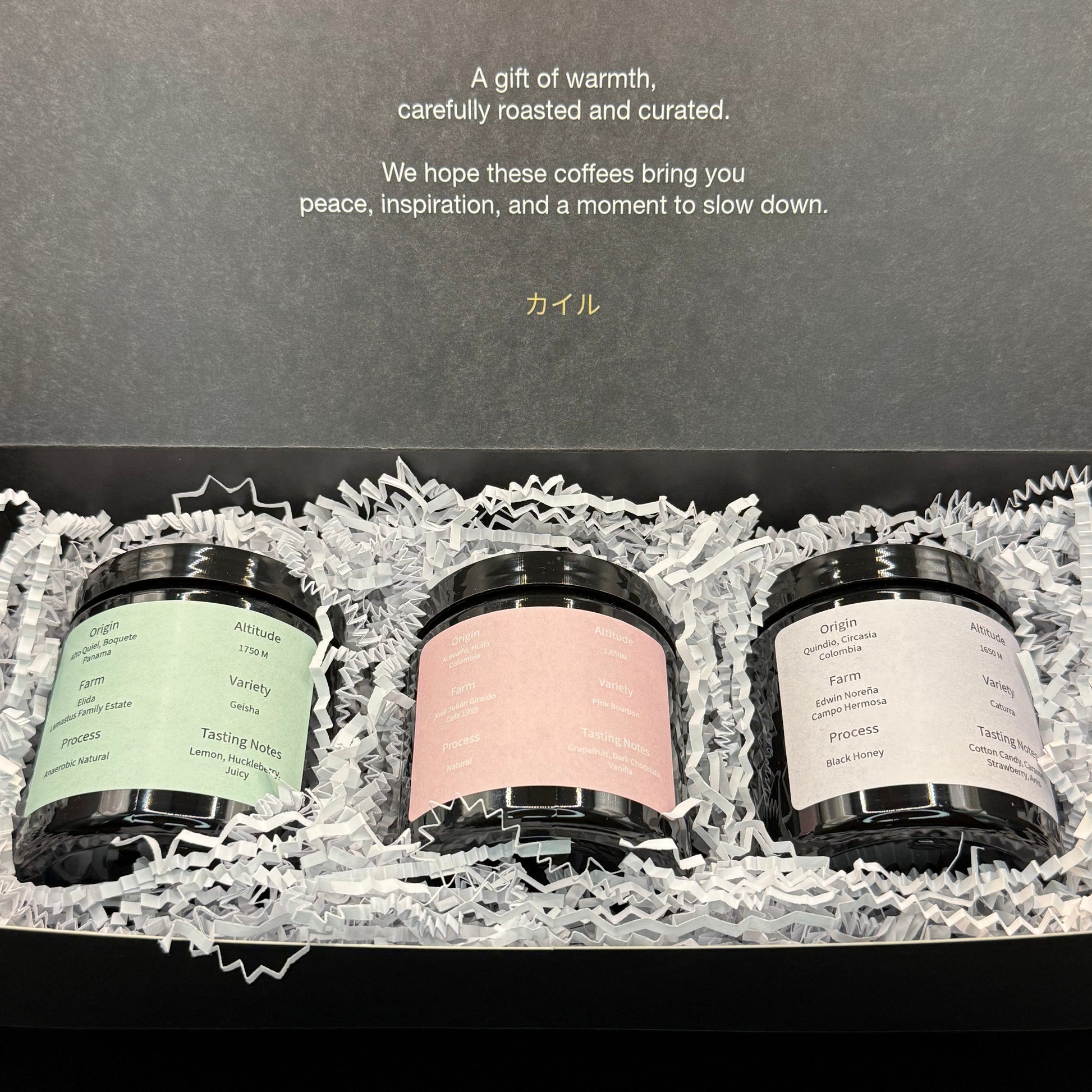 Unwrap the joy of specialty coffee with the Kairu Coffee Holiday Sample Box, a beautifully curated trio of seasonal single-origin gems selected to delight both newcomers and seasoned coffee lovers. Each box includes three artisanal coffee jars (100g each), highlighting the diversity, craftsmanship, and rich flavors that define Kairu’s approach to small-batch roasting.